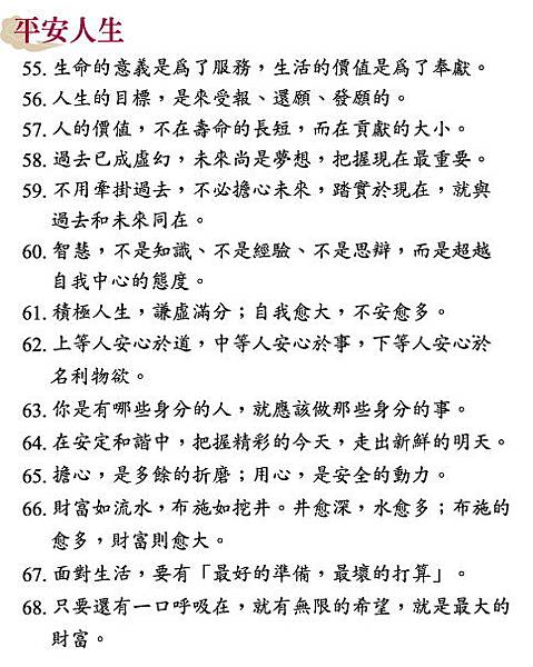 人行道~作者:聖嚴法師著~第一篇~起心動念皆修行 - 隨相而離相:我們生活在這個世界上,在每一天的作息之中,一定會跟身邊的人事物發生互動關係。有了互動,就免不了生出各種喜怒哀樂的情緒;得意的時候,沾沾自喜; 失意的時候,就消沈頹喪,這是一般人的反應。